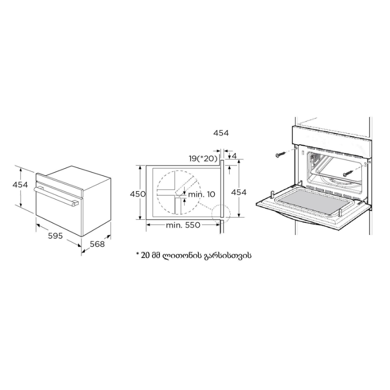 • პროდუქციის ტიპი: ჩასაშენებელი მიკროტალღური ღუმელი