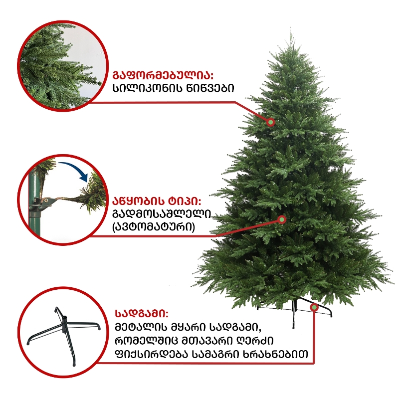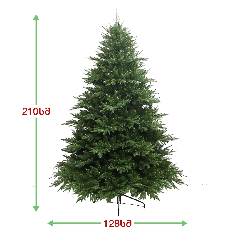 ნაძვის ხე ჰიმალაი 210სმ (PS-210) – ბუნებრივის მსგავსი ნაძვის ხე, დრეკადი მეტალის ტოტებით და ჯანმრთელობისთვის უსაფრთხო მასალისგან დამზადებული შერეული ორი ფერის, სილიკონის და PVC წიწვით . მეტალის მყარი სადგამით და მთავარი ღერძით.