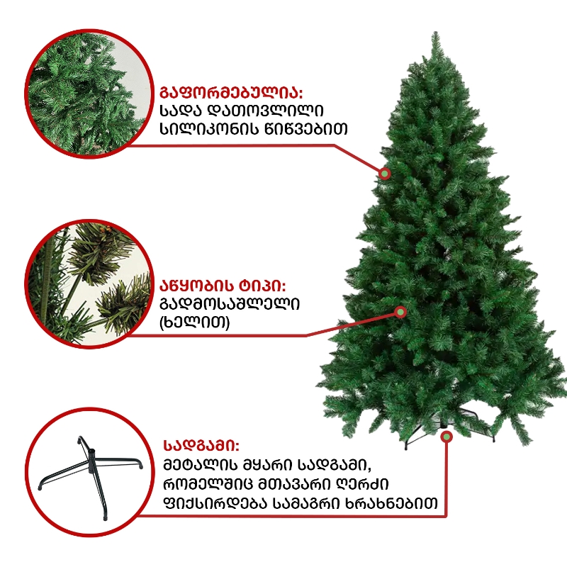 ნაძვის ხე ლონდონი 210 სმ (BS-210) – სადა მწვანე ნაძვის ხე გამძლე დრეკადი მეტალის ტოტებით და ჯანმრთელობისთვის უსაფრთხო მასალისგან დამზადებული წიწვებით. მეტალის მყარი სადგამით და მთავარი ღერძით.