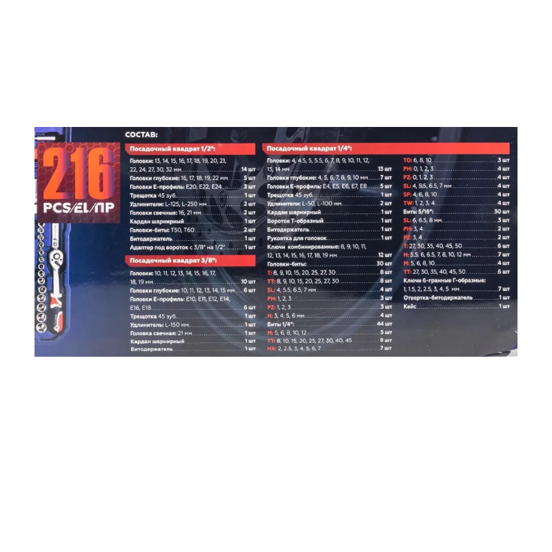 • პროდუქტის ტიპი: ხელსაწყოების ნაკრები